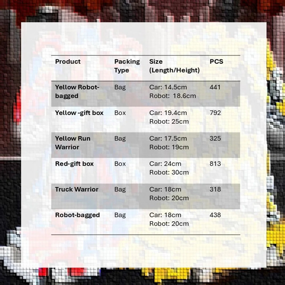 Size: Car: 17.5cm/Robot: 19cm